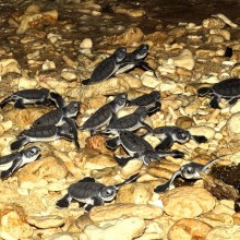 この鍾乳洞は400m先の海底とつながる海底洞窟で、地下水(淡水)と海水が混ざる汽水環境(アンキアライン)となっている。