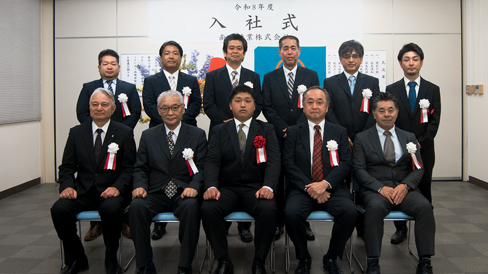 若葉が青々と輝く季節、夢と意欲を携えた若者を迎え、令和8年度入社式を挙行しました。 地域やさとうきび産業の次世代を担う人材として育成したく、皆様のご指導・ご鞭撻を宜しくお願い致します。